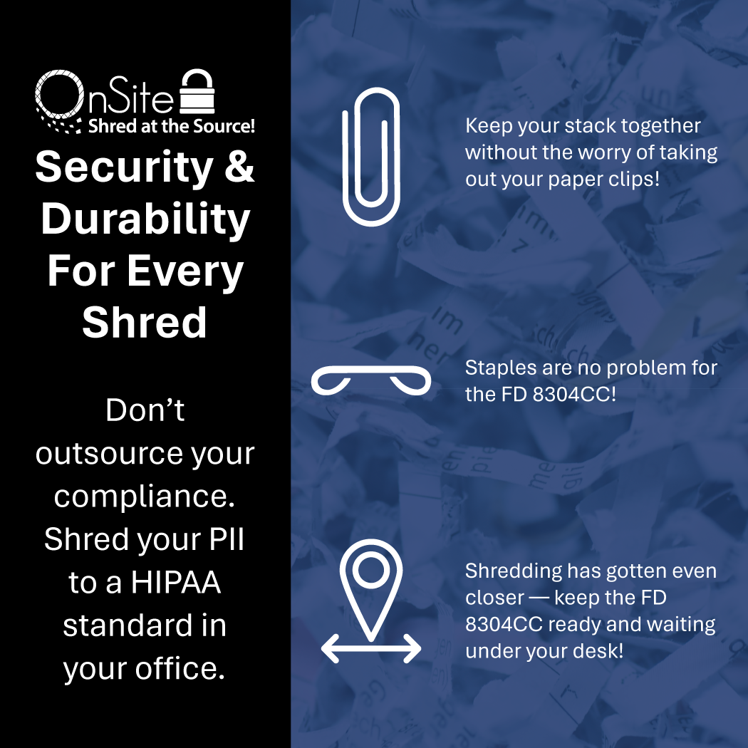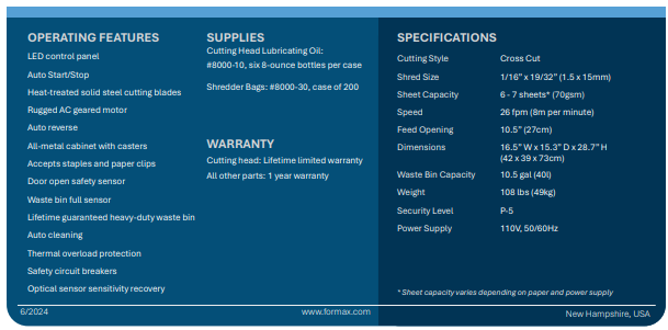 This compact, rugged model easily provides on-site destruction of sensitive information for small businesses or the home office.