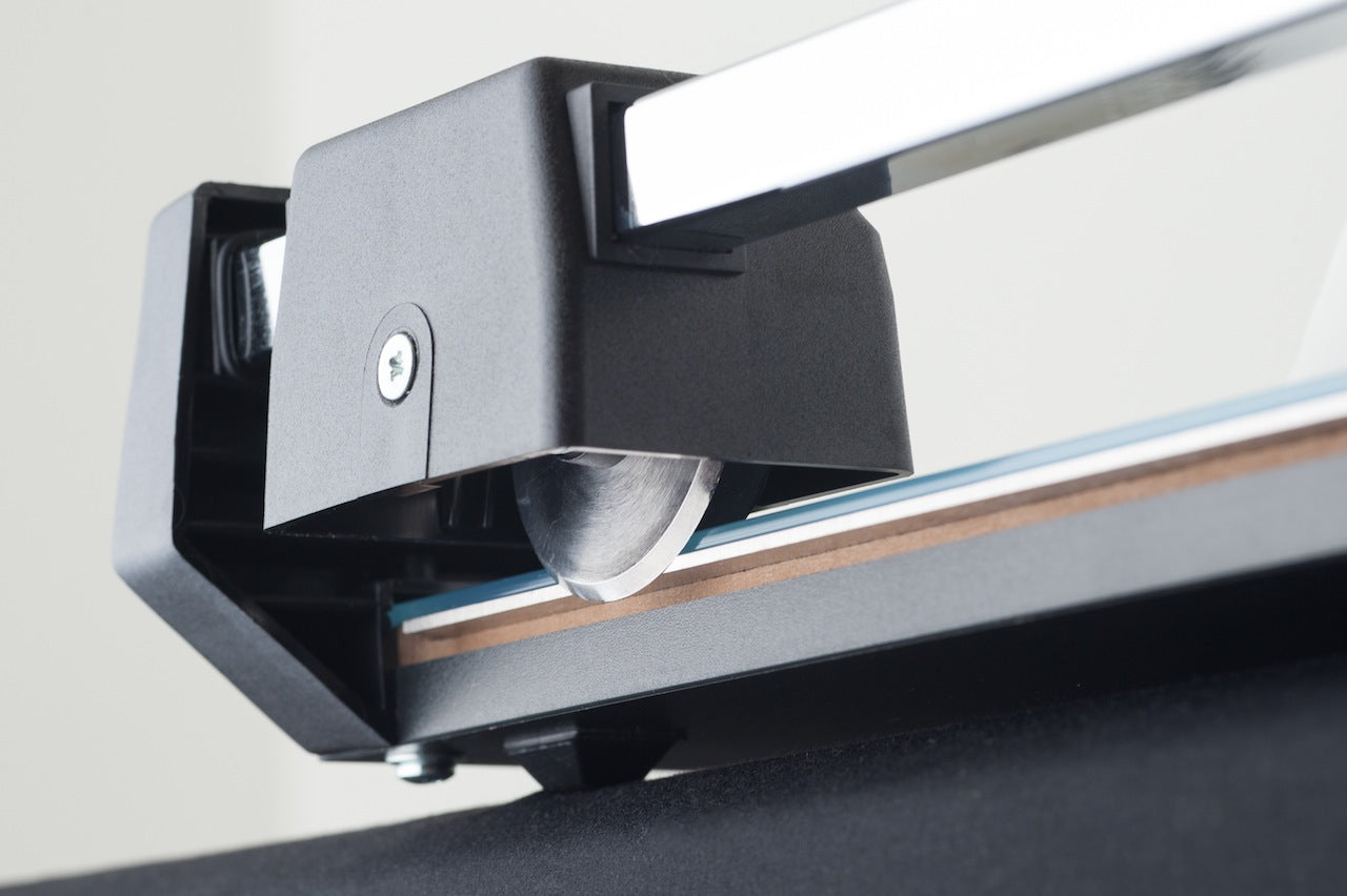 This is the smallest of the MasterCut ‘MC’ Series range and will comfortably cut materials up to 350mm (13¾”) in length, large enough to easily accommodate A4 landscape. It is a precision trimmer which will cut most flexible materials up to 2.0mm in thickness.