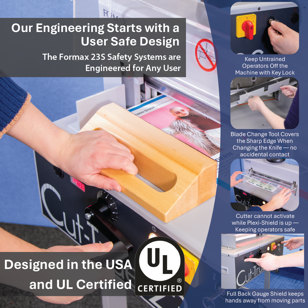The Cut-True 23S is ideal for transforming brochures, invitations and more, with crisp, accurate cuts, and makes a welcome addition to print shops and in-plant finishing operations.